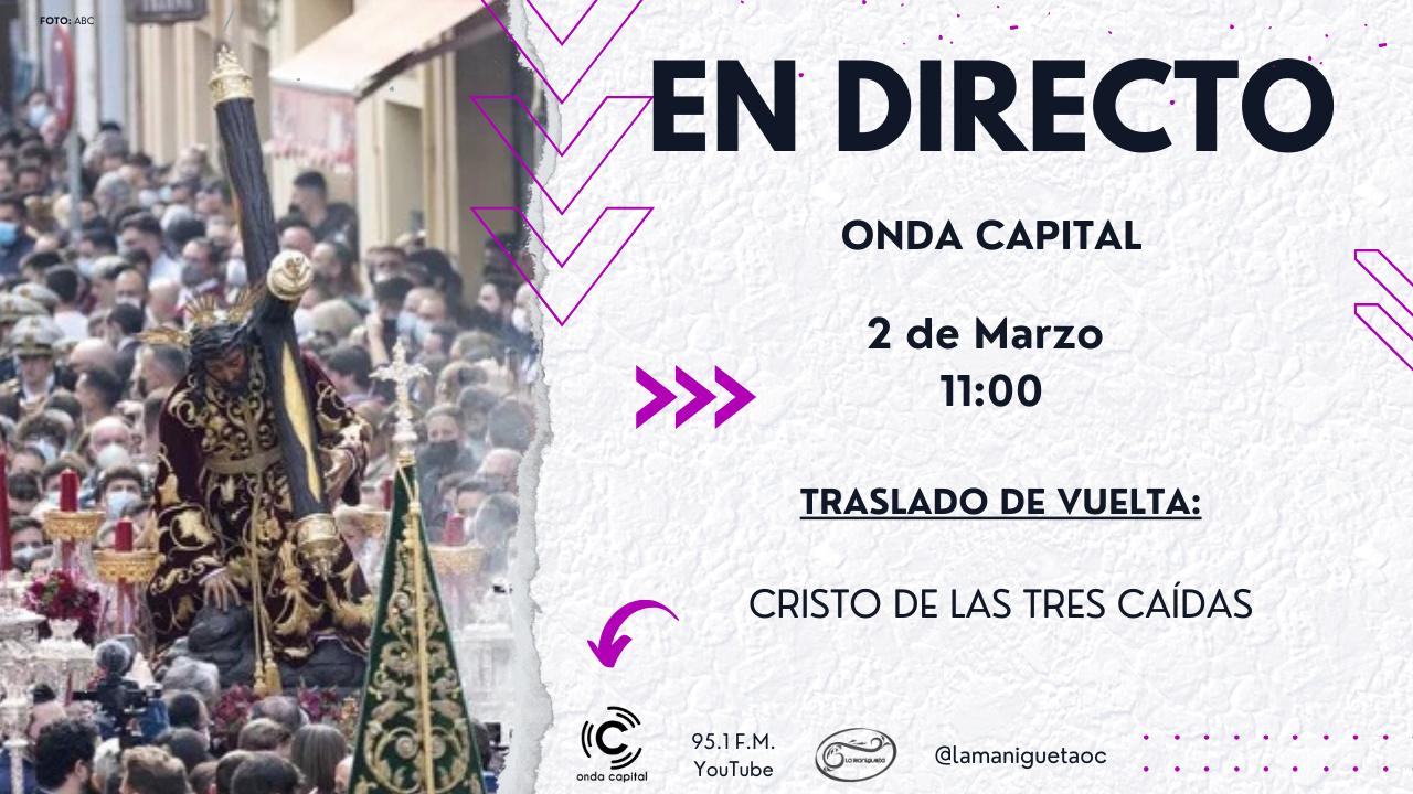 La Manigueta, el programa cofrade de Onda Capital, te lleva el traslado de Vuelta del Señor de las Tres Caídas, a tu casa. Desde el YouTube de Onda Capital, vivimos esta jornada tan especial ¡Síguenos en directo! 95.1 FM Sevilla Te esperamos en nuestras redes sociales como: @ondacapitalfm @lamaniguetaoc #TresCaidasTriana #SSantaSevilla.