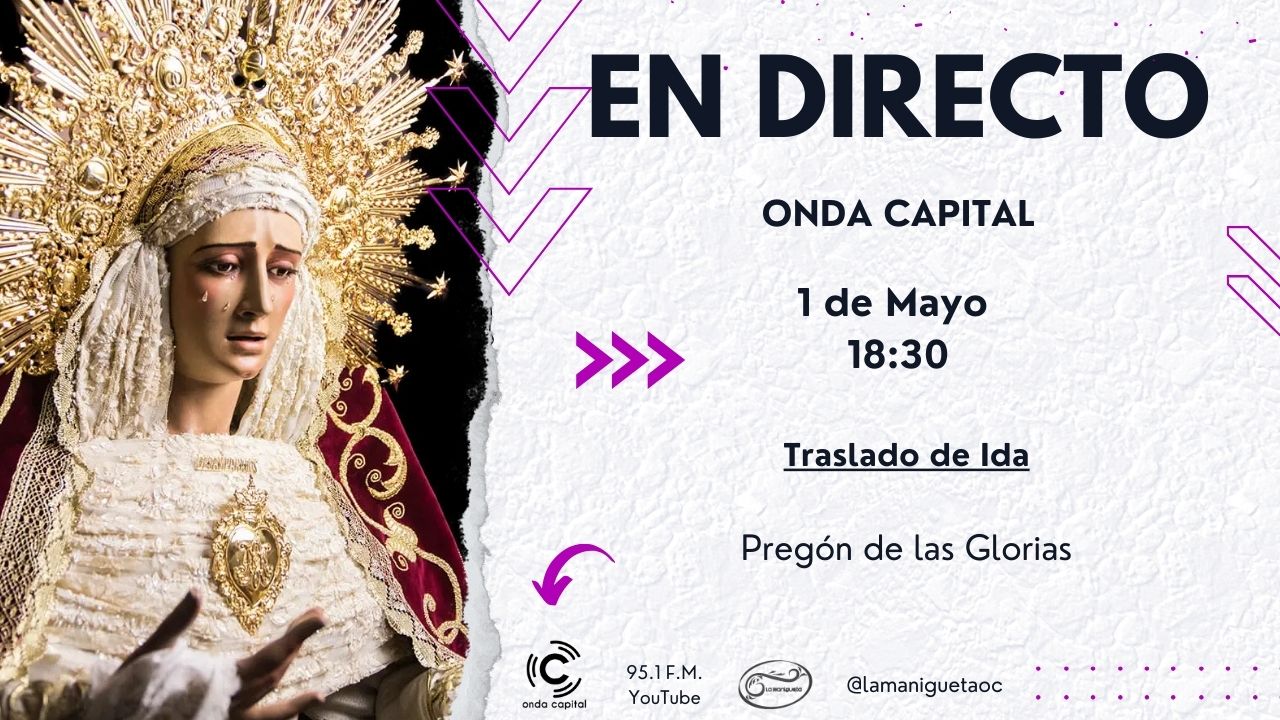 Vive la Ida Pregón de las Glorias de María 2025 en Onda Capital, con la Virgen de los Desamparados de Alcosa.