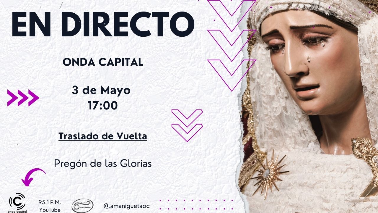 Vive la vuelta del Pregón de las Glorias de María 2025 en Onda Capital, con la Virgen de los Desamparados de Alcosa. #TDSCofrade #BurdeosyOro #SevillaAtuAmparo